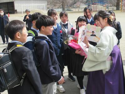 5月9日(金)、5年生9名は田植え学習を行いました。晴天に恵まれ、黄海地域の耕作支援隊の皆様や黄海老人クラブ連合会の方々にご協力をいただきながら、貴重な体験になりました。この活動は、岩手日報岩手日日、JA、一関ケーブルテレビの取材も受けました。