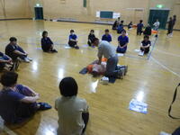 一関南消防署藤沢分署の方を講師に招き、PTA救命講習会が行われました。夏休み中のプール開放や、日常の生活で万が一の場合に備えるもので、PTAの研修部が担当し行われています。